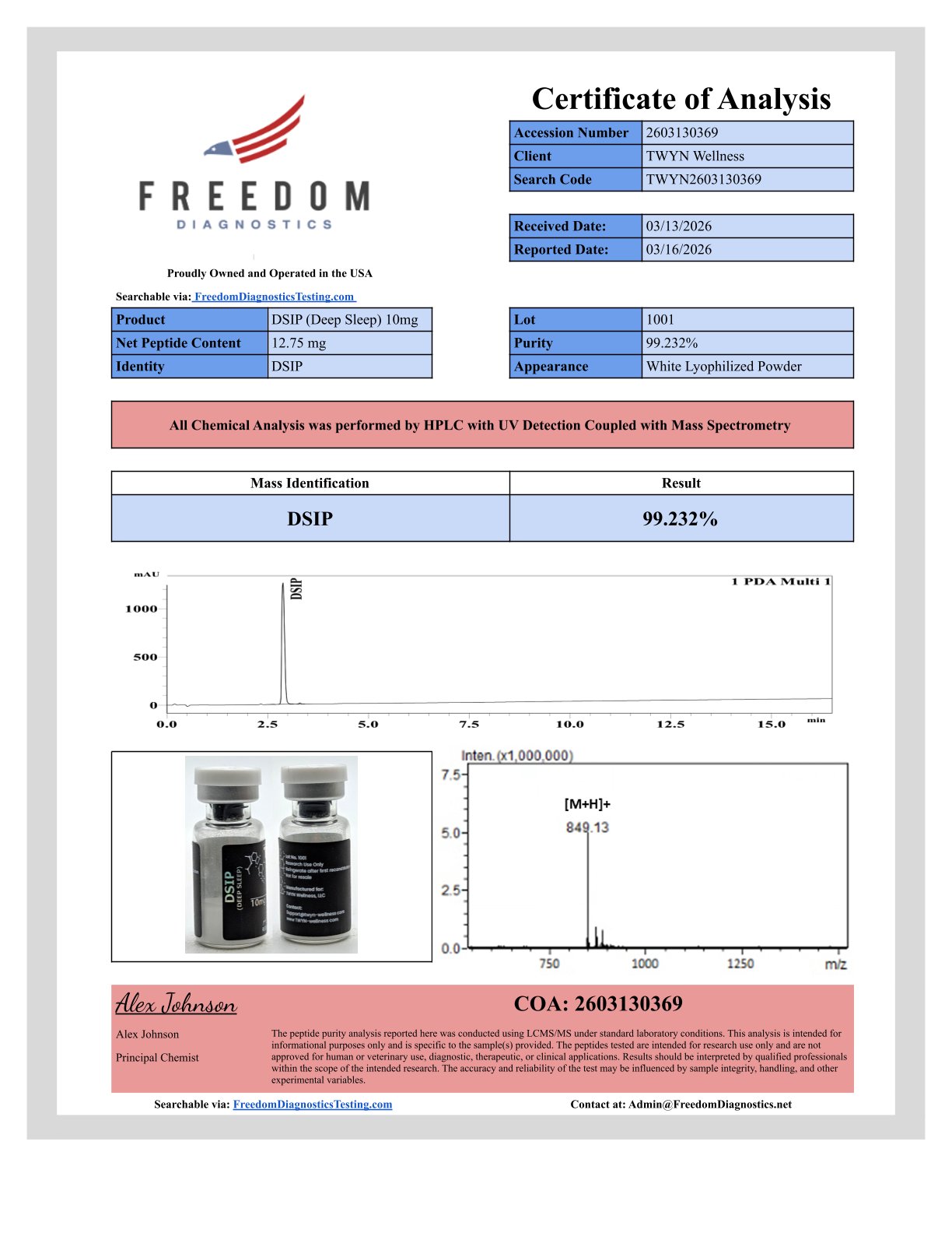 DSIP (Delta Sleep-Inducing Peptide) is a naturally occurring neuropeptide studied for its regulatory effects on multiple central nervous system pathways involved in sleep-wake cycling, stress physiology, and neuroendocrine signaling. Although originally identified in association with slow-wave (delta) sleep, subsequent research suggests DSIP may influence broader physiological processes, including modulation of stress responses, pain perception, and mitochondrial function under hypoxic or oxidative conditions.