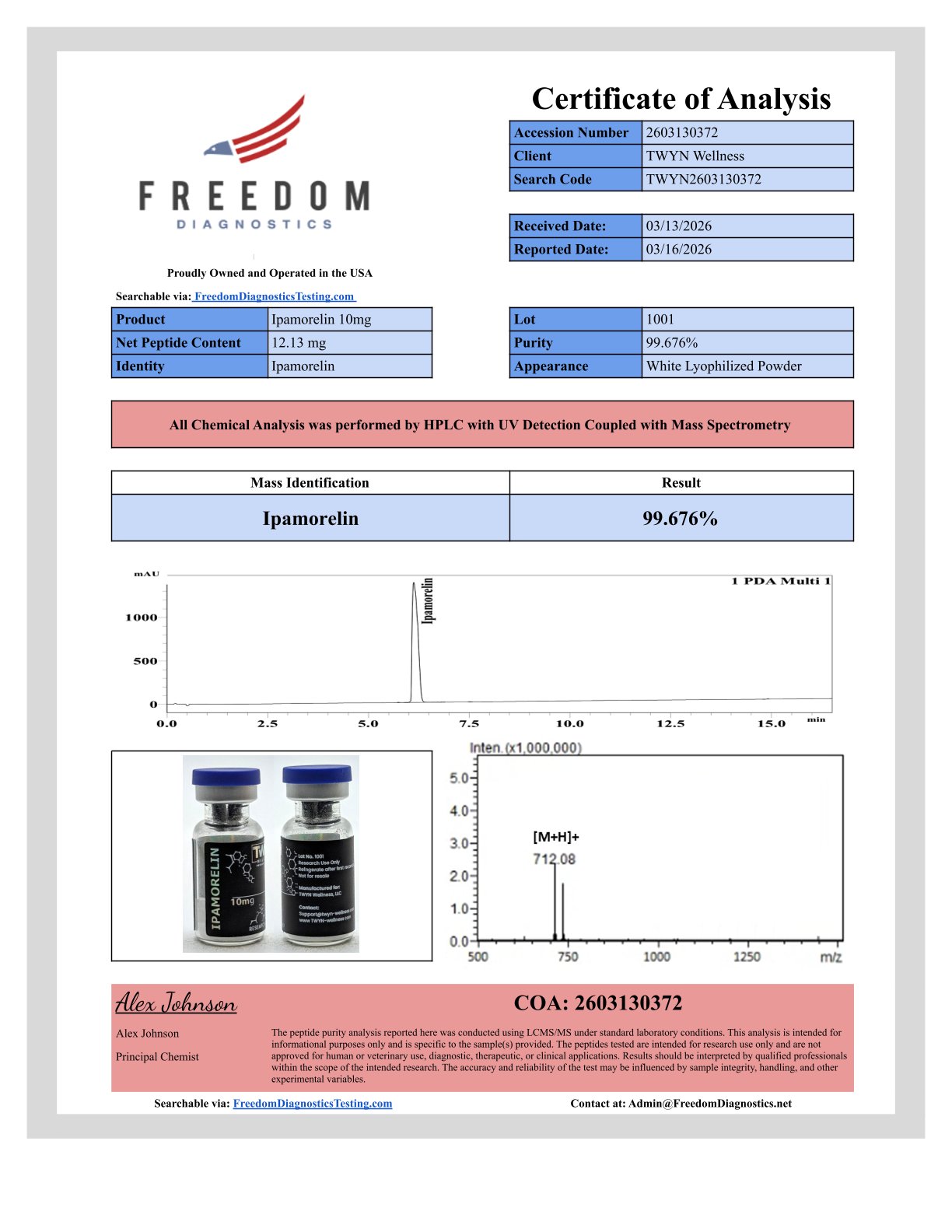 Ipamorelin is a synthetic pentapeptide growth hormone secretagogue that selectively binds the growth hormone secretagogue receptor (GHS-R1a), also known as the ghrelin receptor. In experimental models, Ipamorelin activates Gq/PLC-dependent calcium signaling pathways that stimulate growth hormone release while demonstrating minimal activity on other pituitary hormones, including ACTH, prolactin, FSH, LH, TSH, and cortisol. Due to its high receptor selectivity, Ipamorelin is widely utilized in research investigating somatotropic signaling specificity, pituitary receptor pharmacology, and peptide-mediated regulation of musculoskeletal growth and tissue repair.