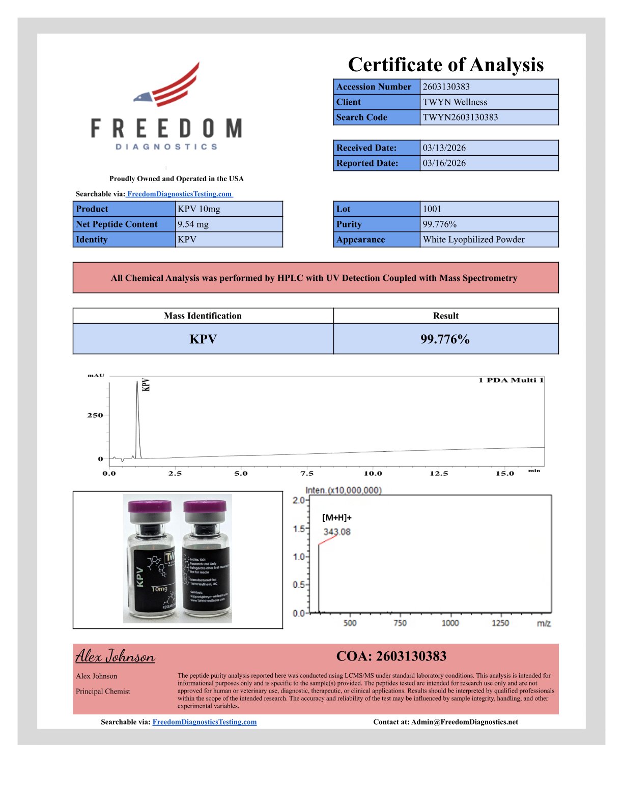 KPV is a synthetic tripeptide fragment derived from the C-terminal sequence of alpha-melanocyte-stimulating hormone (α-MSH). It exerts regulatory effects on inflammatory signaling via melanocortin receptor activation and NF-κB pathway modulation in experimental models. KPV is used in research investigating epithelial integrity, cytokine balance, and immune-mediated stress responses.