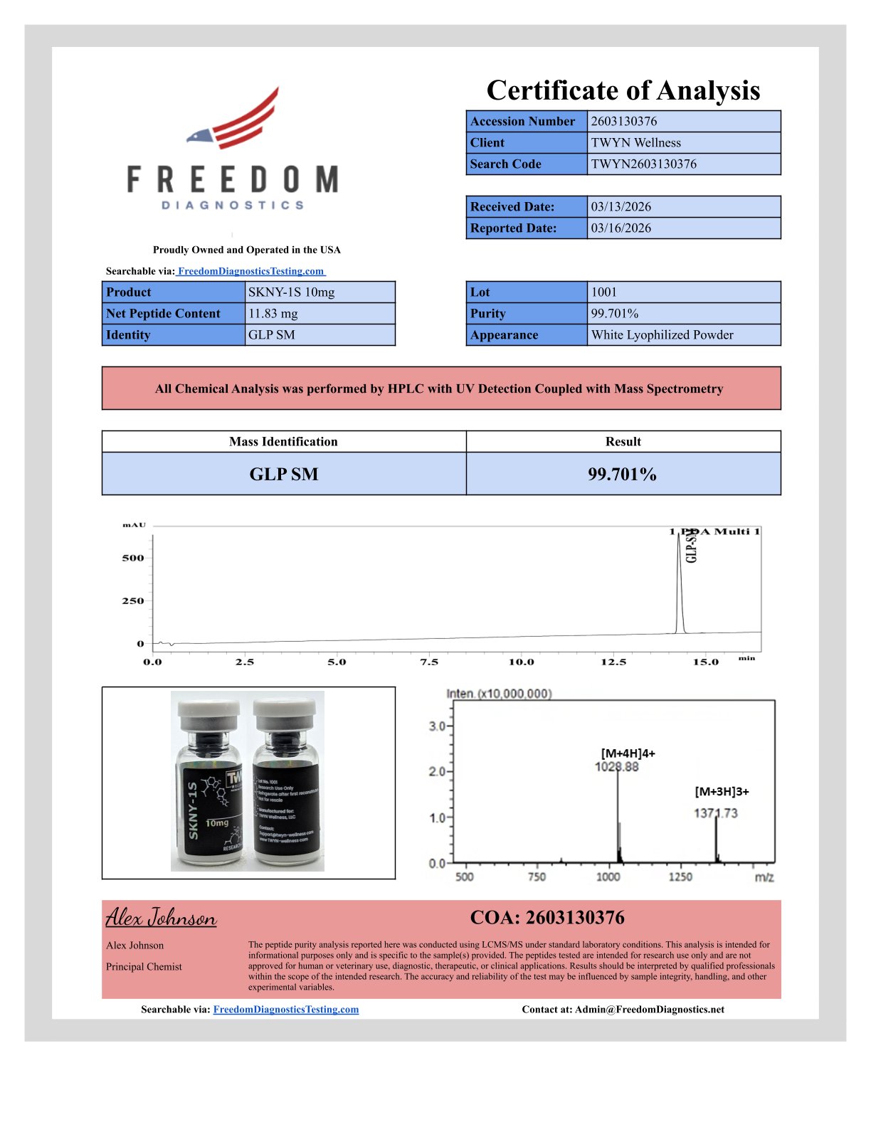 SKNY – 1S is a synthetic peptide that functions as a glucagon-like peptide-1 (GLP-1) receptor agonist. In preclinical and clinical research, it has been investigated for its potential to influence glucose regulation, appetite signaling, and gastrointestinal motility. Studies have focused on its effects in models of metabolic function, including energy balance and insulin sensitivity. For Research Use Only. Not intended for human consumption, medical, diagnostic, or therapeutic purposes. *For research use only. Not for human consumption.